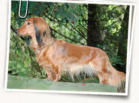 One of the most widely recognized of breeds the Dachshund is a delightful companion. Apart from his size everything about him is big, from his deep devotion to his family to his bravery and tenaciousness. He himself has every confidence that he is a big dog and will fearlessly defend his property and people from perceived threat and will never hesitate to take up a challenge thrown down by dogs much larger than himself. He is an excellent watchdog and guardian of his territory. Always alert to whatever is going on the presence of strangers is announced with a loud and ferocious barking out of all proportion to his size. With friends and family and with dogs that he knows he is a playful and mischievous character. This extroverted personality, combined with intelligence and an independent streak makes necessary an owner who will firmly but kindly set the boundaries of acceptable behaviour. Once trust and respect are established he will give his love and loyalty without reserve. In return all he asks is to be included as one of the family. He thrives on attention and companionship and is unsuited to being left alone in a yard for long periods of time. In such a situation he will become miserable and bored and may seek outlets for his frustration in destructiveness, barking, or attempts to escape. This breed is not recommended for families with young children as teasing is not well tolerated and inappropriate handling and rough play can easily cause spinal damage.